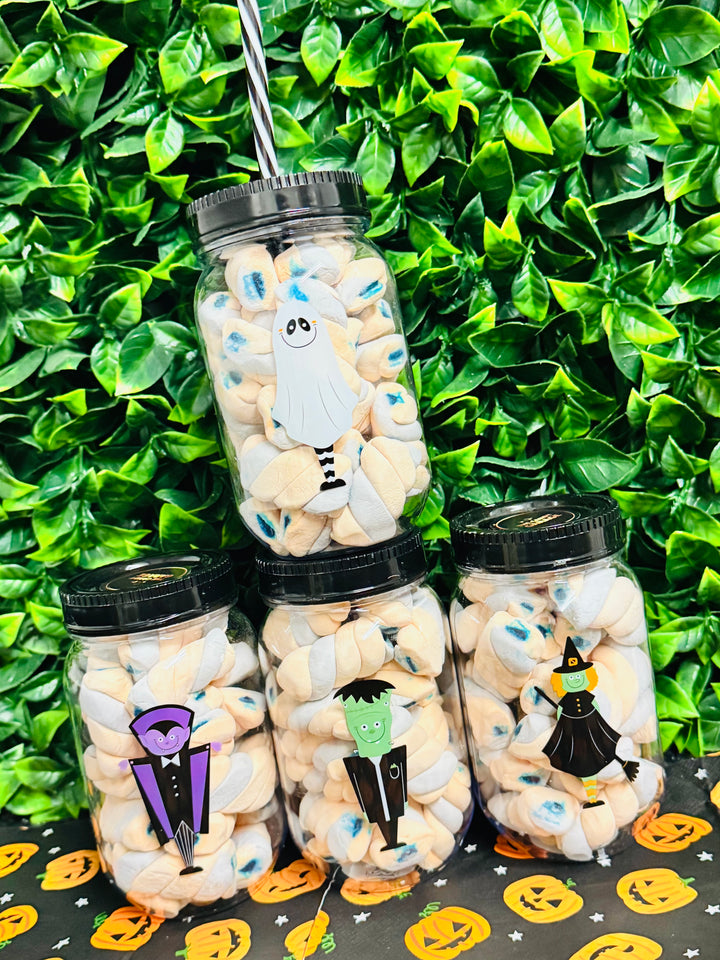Get ready to paint the town (and your tongue) with these Halloween-themed plastic tumblers filled with delicious tongue painting marshmallows. Use them year after year to bring a spooky touch to your Halloween celebrations.