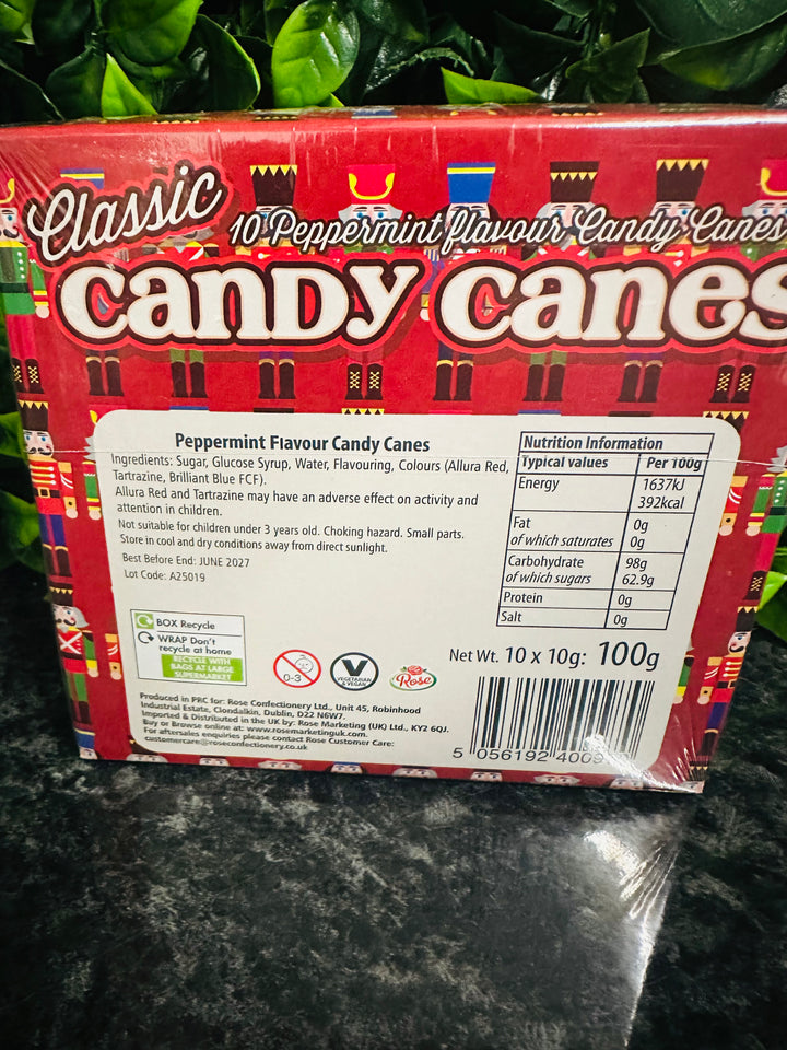Get your holiday festivities started with our 10 pack of peppermint candy canes. These classic Christmas treats are the perfect addition to any tree or holiday decor. With 10 in a pack, you'll have plenty to go around for everyone to enjoy. Get ready to spread some cheer with these delicious candy canes!