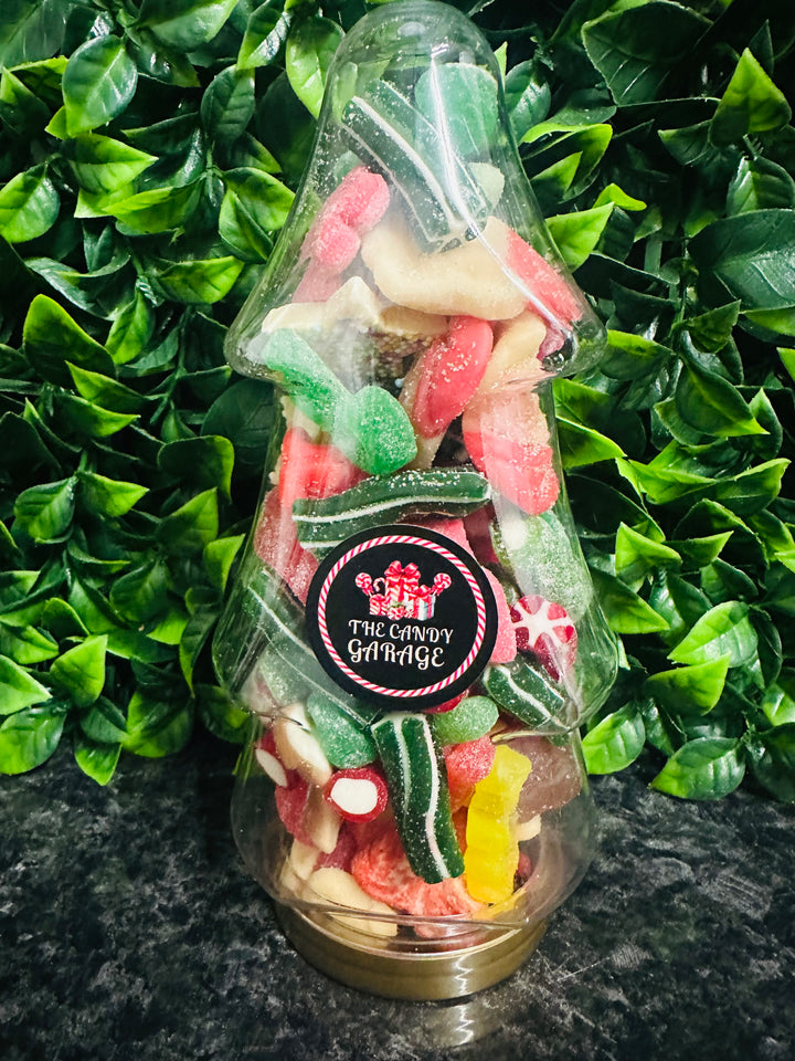 Christmas Tree Jar filled with Christmas themed Pick n Mix