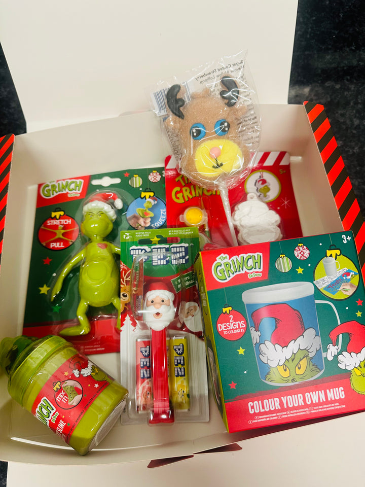 Get ready to embrace your inner Grinch with our Ultimate Grinch Gift Box! Inside, you'll find everything a Grinch lover could want - a colour-your-own mug, stretchy slime and confetti, paintable decoration, stretchy Grinch toy, Christmas Pez, and a festive marshmallow pop. Spread some holiday cheer (or not) with this playful and quirky gift set.